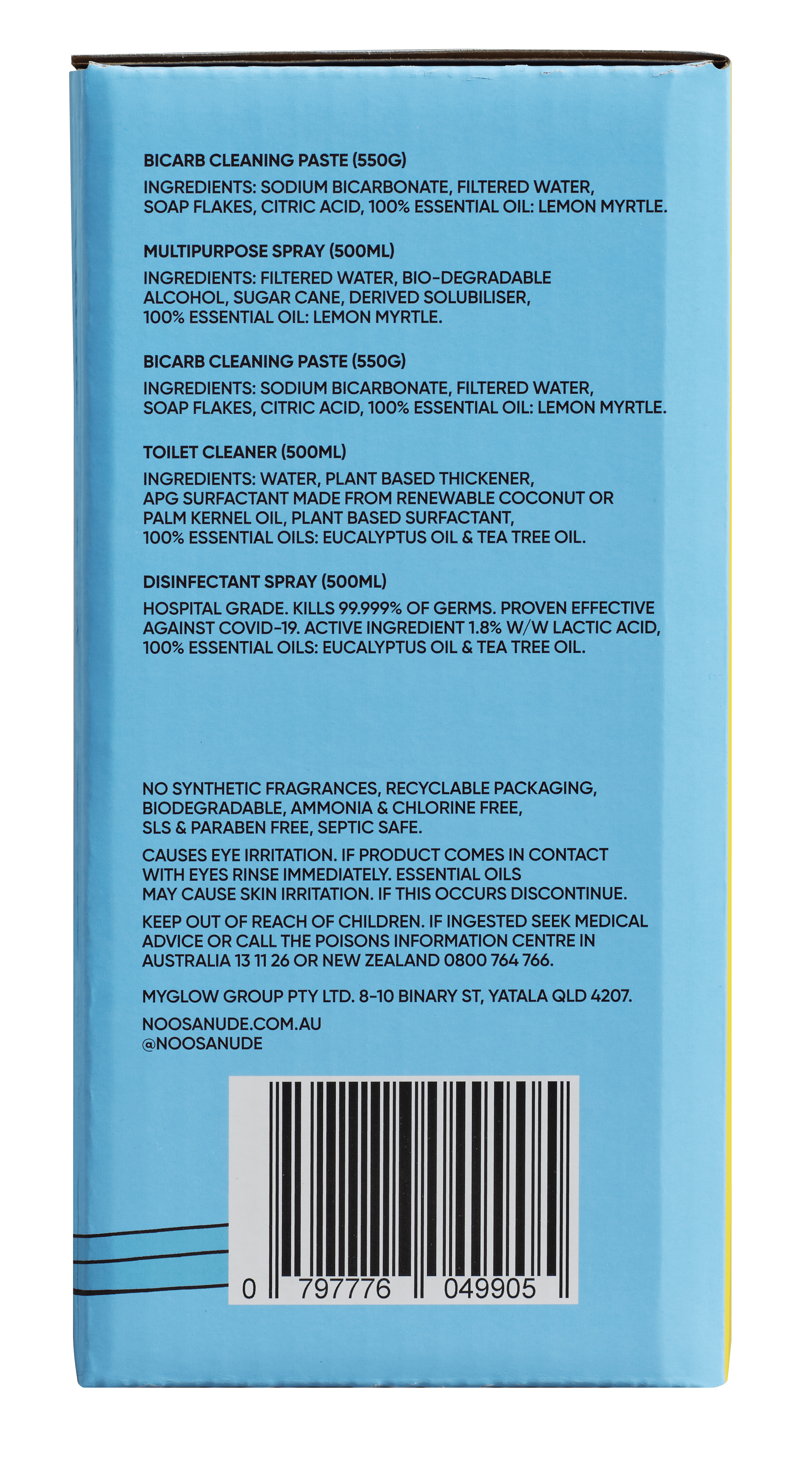 It’s formulated with food-grade, plant-based ingredients and pure essential oils (like eucalyptus, clove, and lemon myrtle), meaning it’s free from: